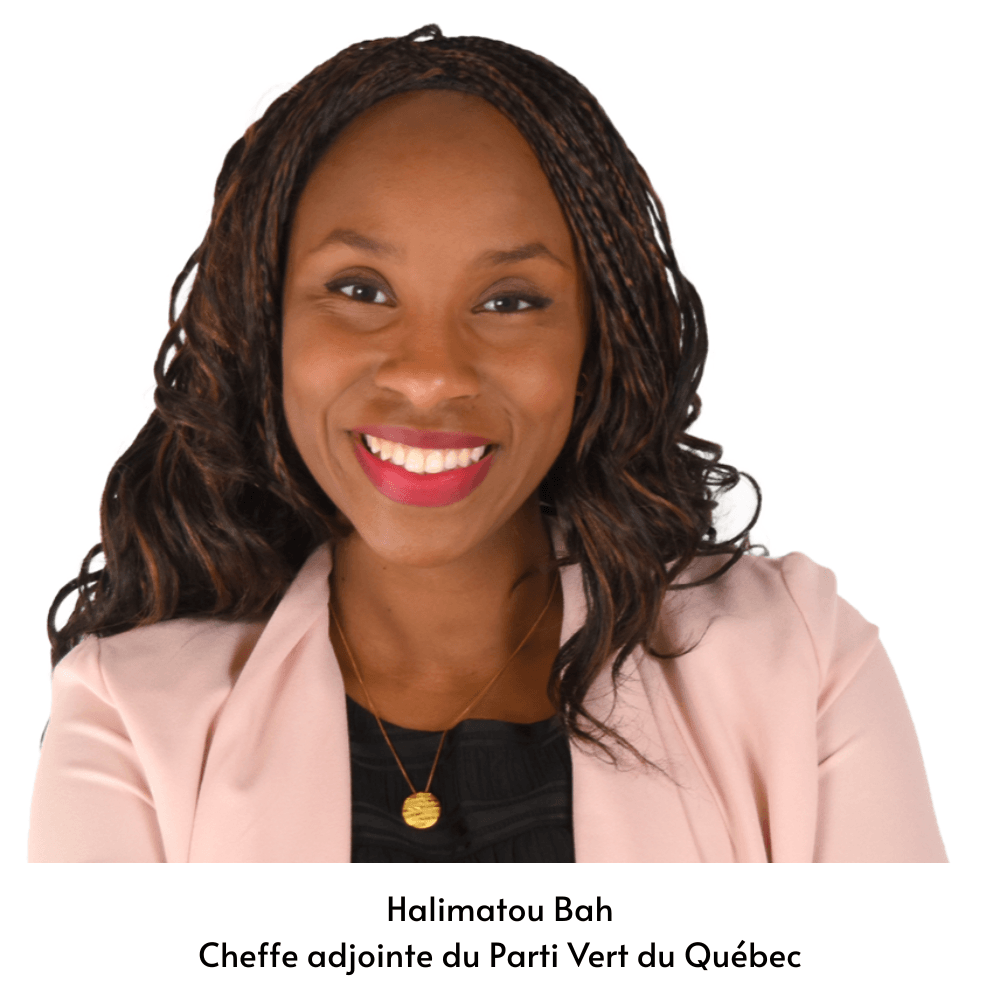 Militante engagée pour l’environnement, la justice sociale et l’égalité, Halimatou Bah s’implique au Parti Vert du Québec afin de promouvoir une vision écosocialiste et inclusive de la société québécoise.